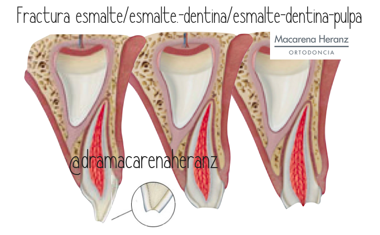 2. Lavar la cara del niño para observar con claridad el tipo de lesión que se ha producido. 3. Llamar/acudir cuanto antes al Odontopediatra. Si el golpe es tan grande como para tener que acudir a urgencias (puntos, grandes lesiones etc…) se debería posteriormente ir al Odontopediatra para valorar la necesidad de realizar radiografías, descartar alguna fractura del diente, de la raíz etc...y valorar la necesidad de tratamiento dental para mejorar el pronóstico de los dientes afectados (si el niño puede morder sin que le choque con los de abajo, riesgo de infección…) 4. NO RE-IMPLANTAR NUNCA UN DIENTE TEMPORAL. 5. NO RECOLOCAR EL DIENTE.